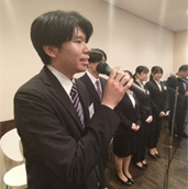 続いて現役部員自身の自己紹介と目標を各自が述べ、最後は松坂幹事が「上を目指し、失敗を恐れずに思いきり、青春の思い出になるように臨んでください」と締めくくった。