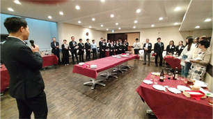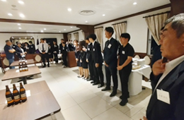 松坂幹事(事務局)の乾杯の音頭の後、青野幹事長は次回インカレのノルディック名寄の開催で、現地で部員を送迎するなど、大会をフォローしていくことを伝えた。さらに林副監督は、